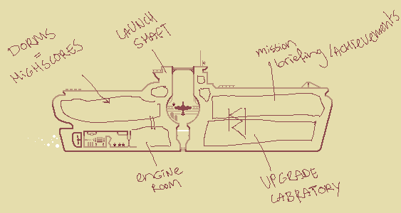 Unfortunatly not every design made it into the game. Something I still would have loved to see in the game was this Main Menu design. I though it would be fun to explore the inner workings of the submarine you launch your rauser from. So I started out making some quick sketches trying to create a good sense of size.