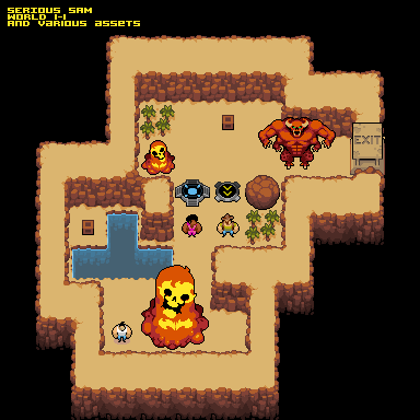I really had a lot of fun imagining how Serious Sam would look if it were an RPG. We started out with the first overworld and the Sam sprite. Trying to add bits from both types of games and merge them together. Creating a unified feel in which the game could take place.